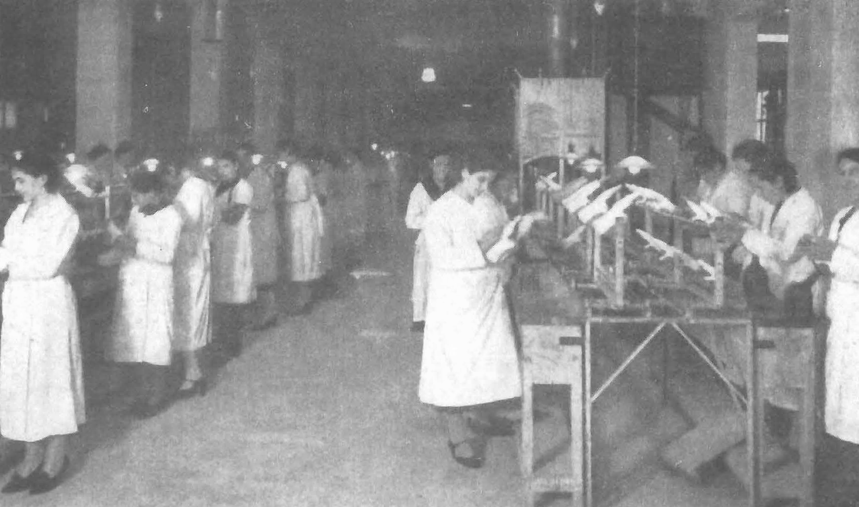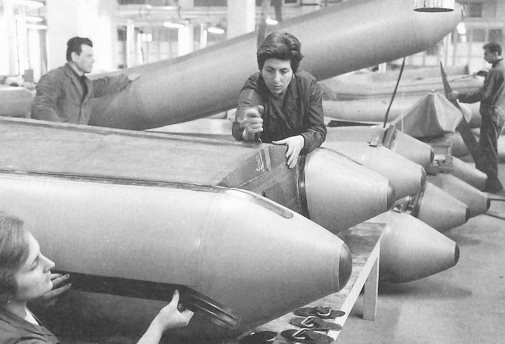 Alcune dipendenti al lavoro nel reparto produzione calzature.